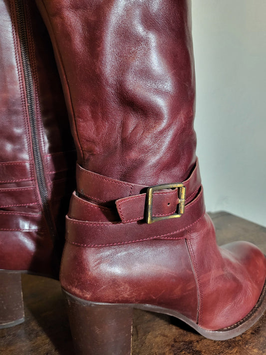 Burgundy Leather Knee-High Boots