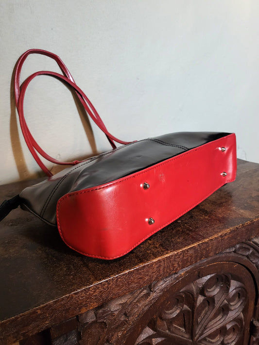 Black & Red Contrast Leather Bag