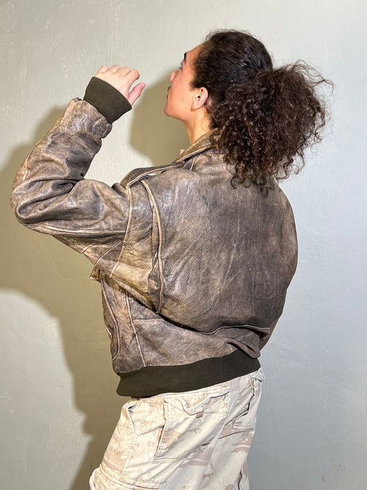 Distressed Genuine Leather Bomber — Heavy 90s Aviation