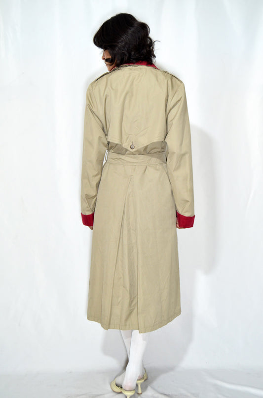 Beige & Red Vintage Trench Coat (Corduroy lining)