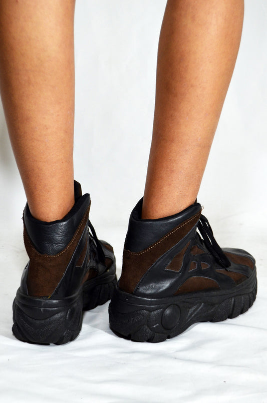 Black & Brown Suede & Leather Vintage Chunky Boots