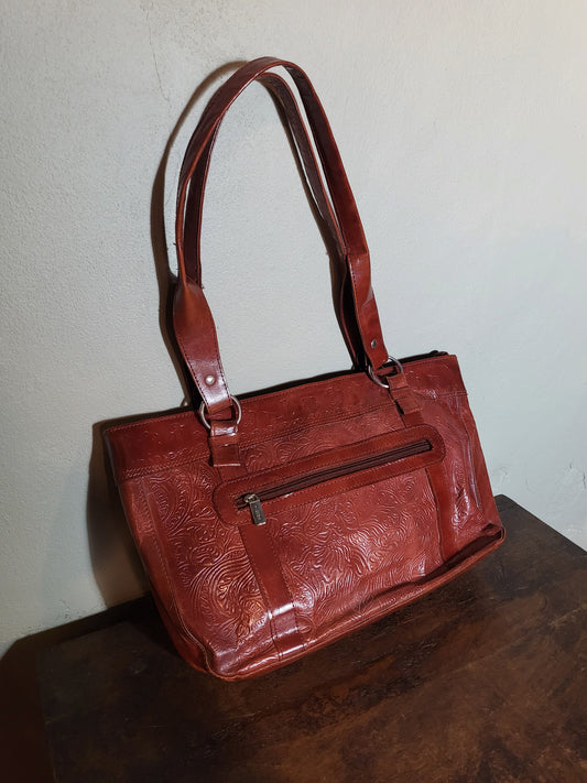 Embossed Cognac Shoulder Bag