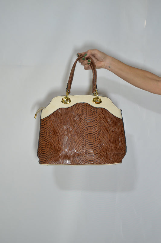 "Michael Kors" Brown & White Genuine Leather Hand Bag