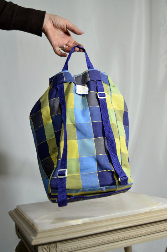 "Mama's & Papas" Purple, Blue & Green Squared Patterned Backpack