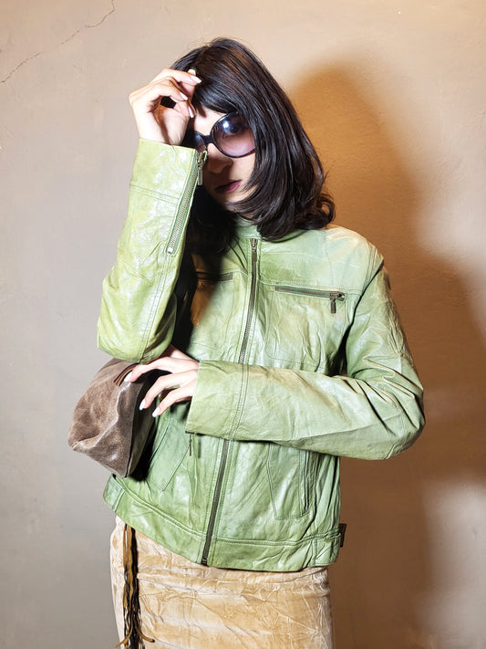 Sold outT&F Vintage Sage Leather Moto Jacket