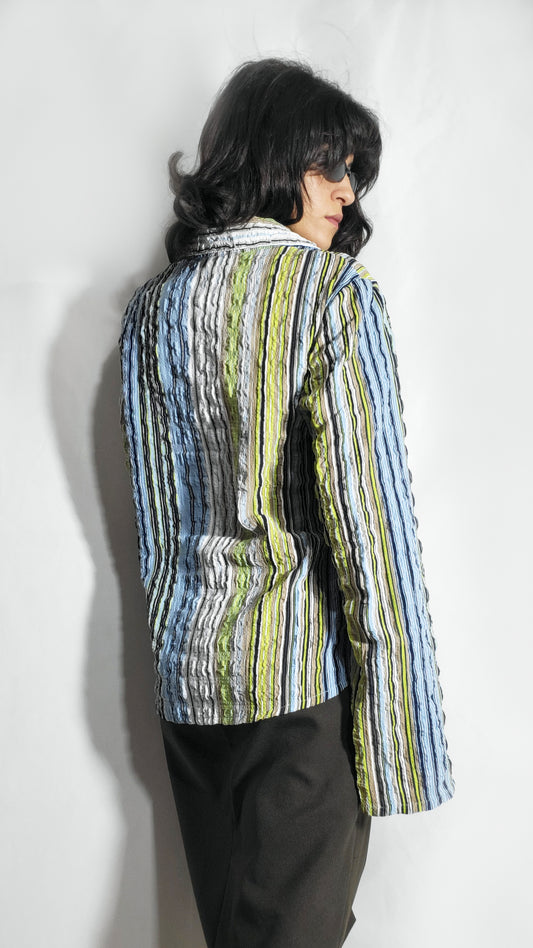 Vintage Crinkle Stripe Button-Up Shirt