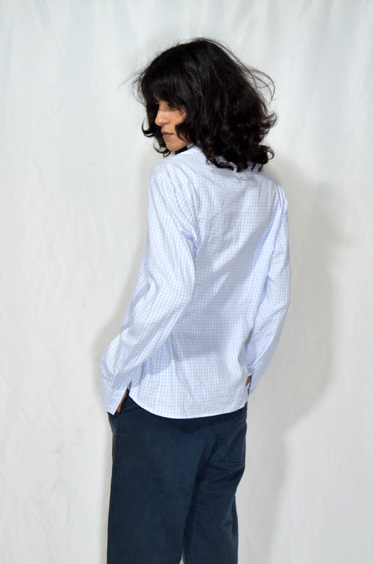 Vintage Light Blue Gingham Button-Up Shirt