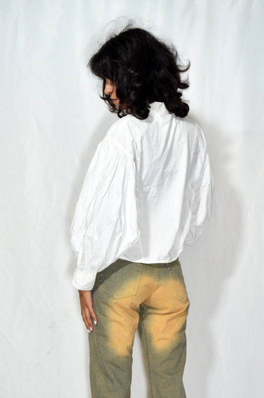 White Vintage "Rene Derbi" Balloon Sleeve Shirt