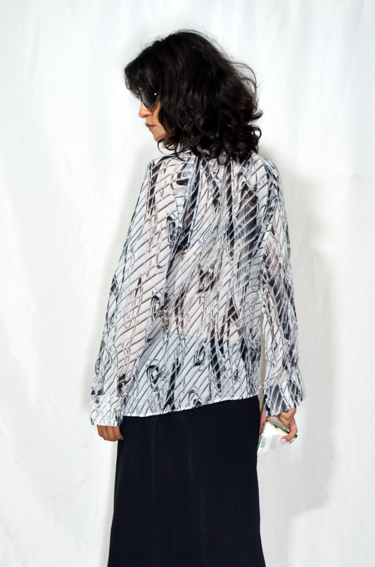 Vintage Sheer Printed Bow Blouse