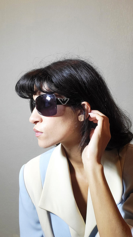 Vintage Emporio Armani Rhinestone Shield SunglassesVendor:BigoudisRegular price $90.00Regular priceUnit price / per-