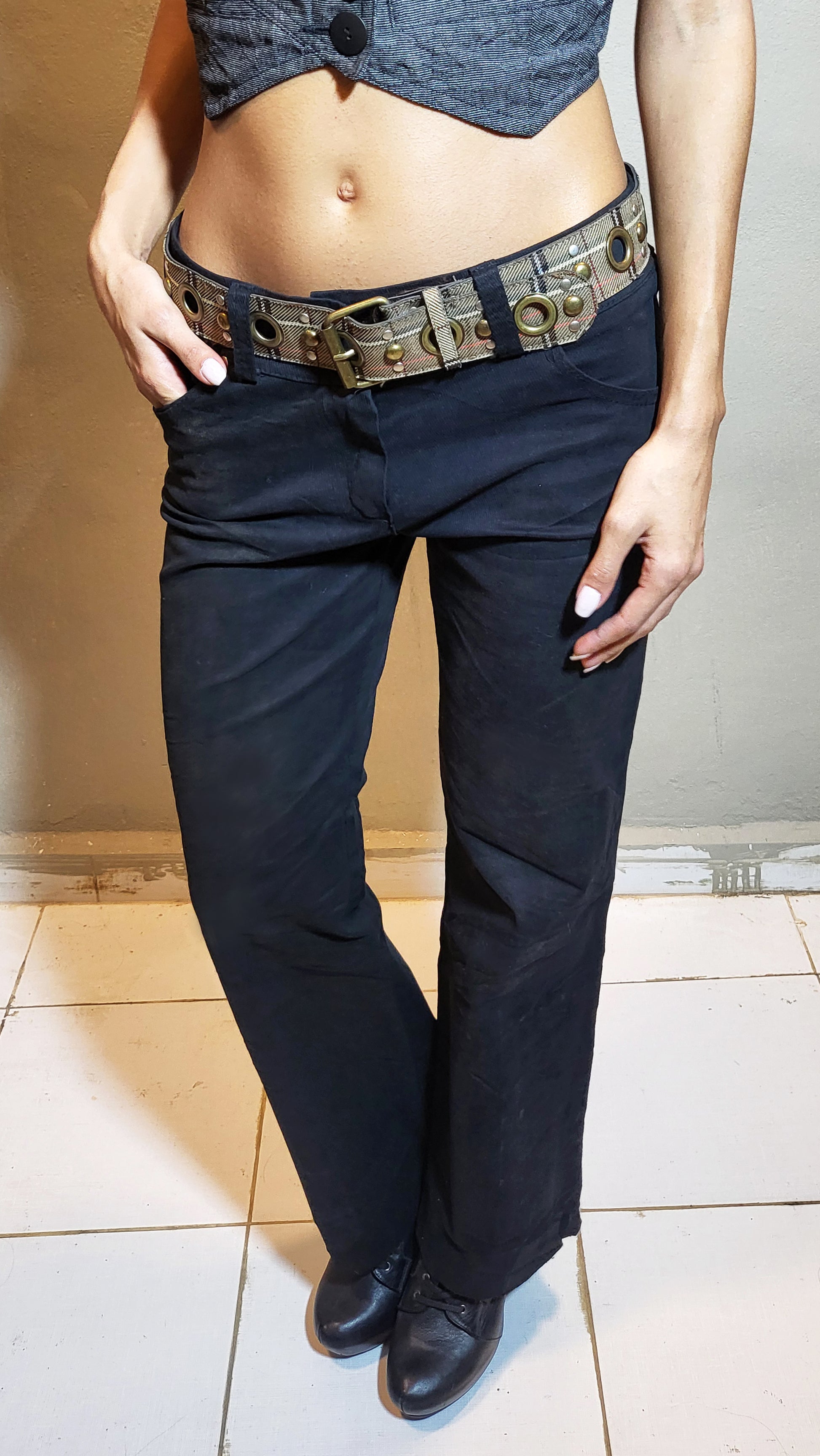 A pair of classic black low-rise pants with a straight-leg silhouette — the perfect Y2K-inspired essential. Minimal, versatile, and easy to style with crops, corsets, or oversized knits.