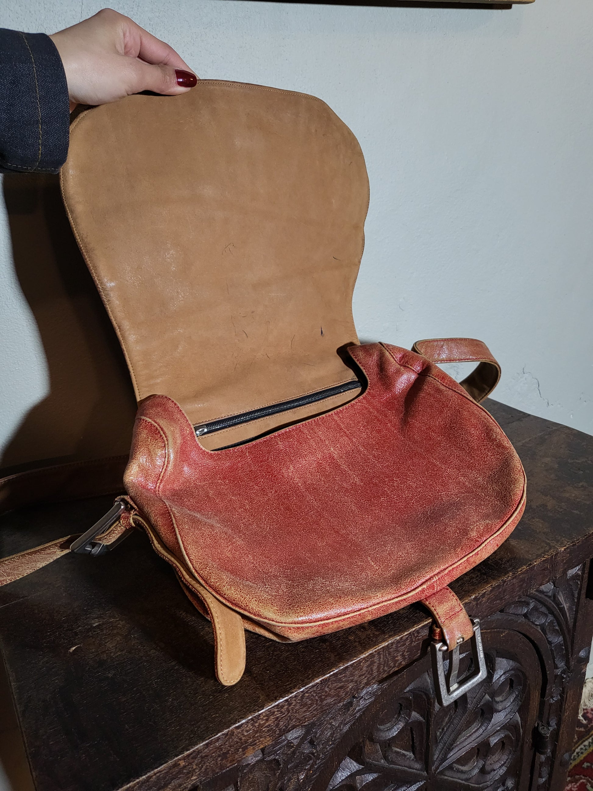 This Johnny Farah crossbody is crafted from genuine leather with a beautifully worn-in finish—rich tones, natural fading, and that perfect patina you can’t fake. Soft, slouchy, and effortlessly cool, it sits just right on the body and carries that quiet vintage confidence.