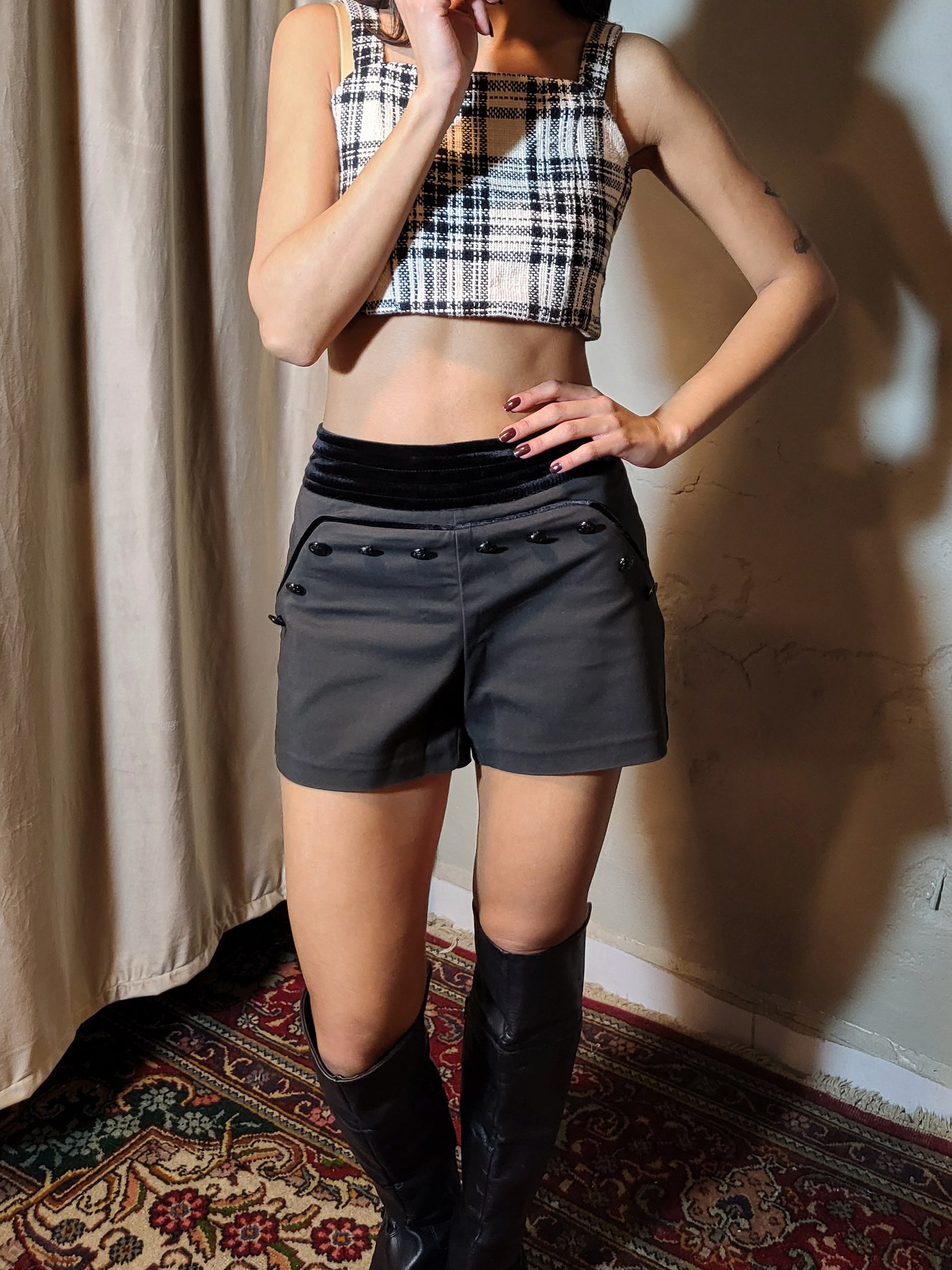 A tailored black short with that unmistakable French early-2000s confidence.