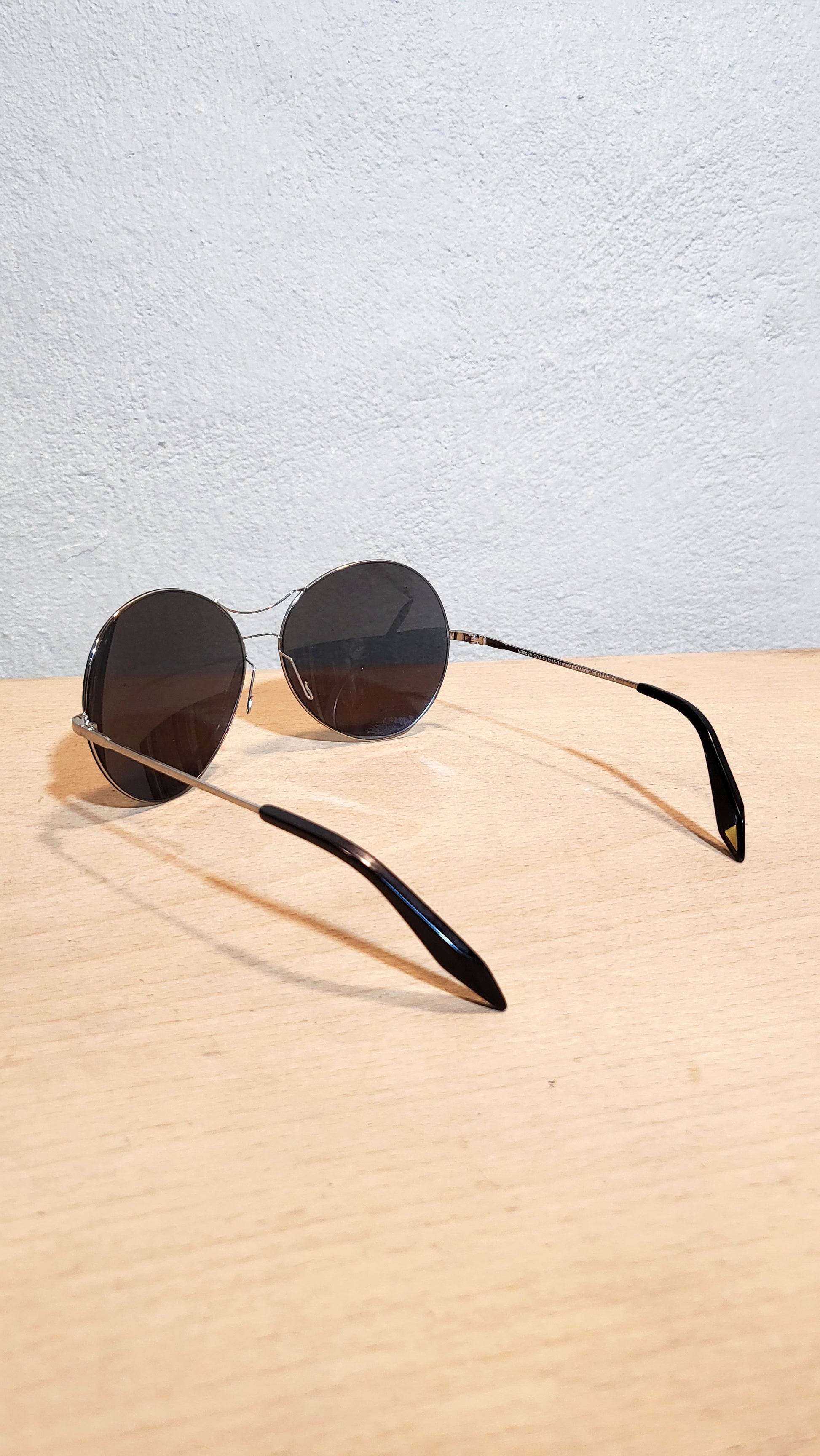 Chic oversized round sunglasses by Victoria Beckham, crafted in Italy. Sleek metal frame with dark gradient lenses giving an effortless high-fashion edge. A timeless statement accessory that elevates any look — from casual denim to elegant eveningwear.